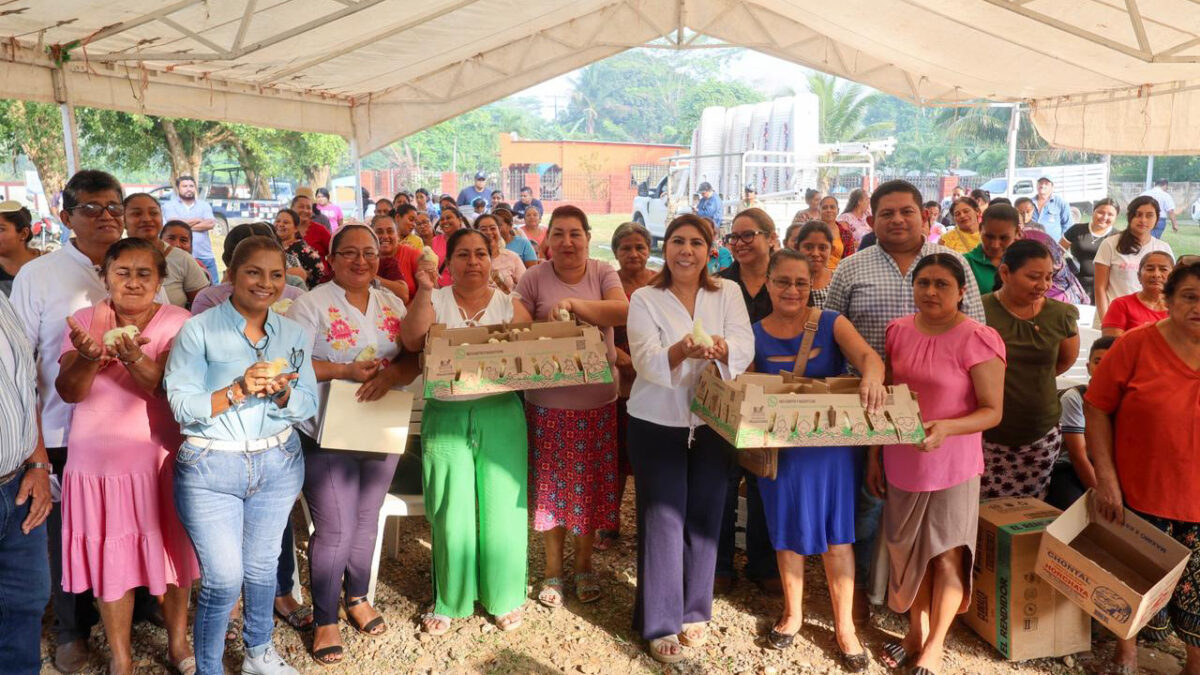 Alcaldesa Mari Luz Velázquez Jiménez realizó entrega de paquetes de pollitos y alimentos en el ejido «Pedregal Moctezuma 2a sección»