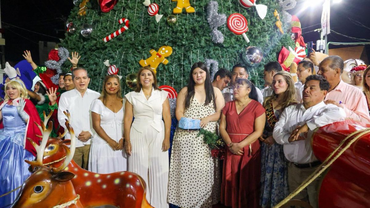 La presidenta municipal Mari Luz Velázquez Jiménez encabezó el tradicional encendido del árbol navideño, compartiendo este momento de alegría y unión con las familias huimanguillenses.