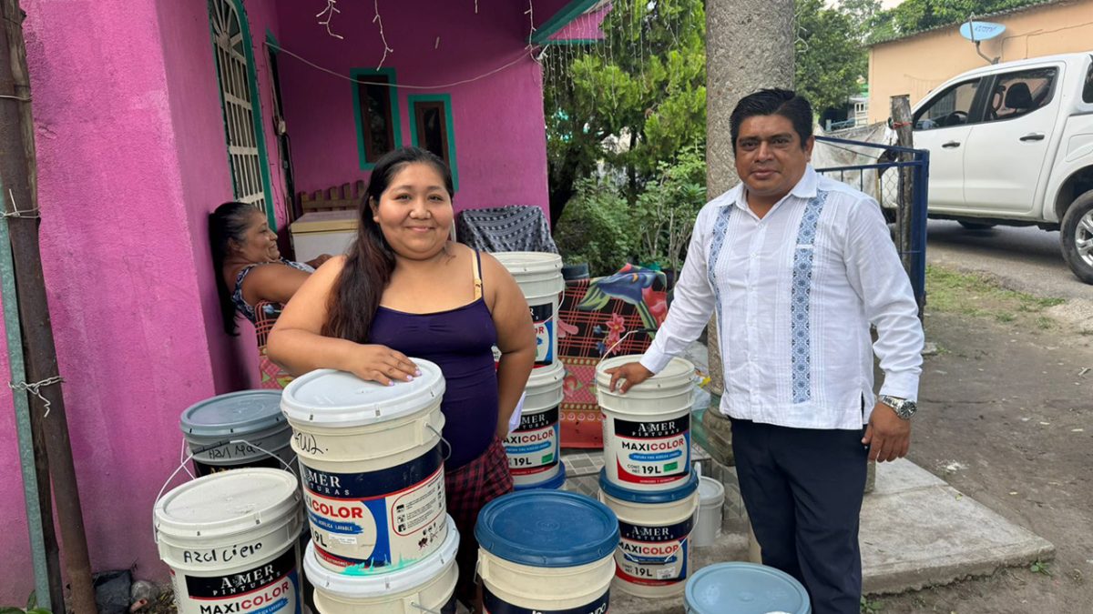 Continúa Gobierno de Huimanguillo apoyando a la ciudadanía con el programa de «Pinta tu Casa»