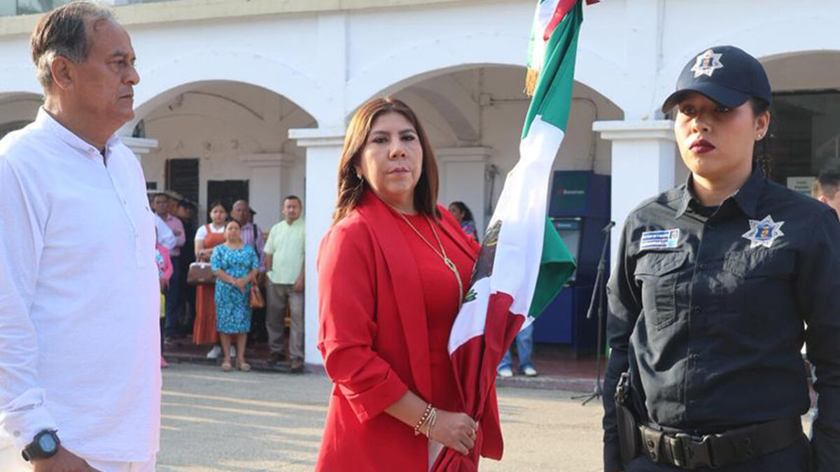 En el marco del Día de la Bandera, símbolo de nuestra identidad y soberanía, este martes la presidenta municipal, Mari Luz Velázquez Jiménez, encabezó en la explanada del Parque Benito Juárez el acto cívico conmemorativo por el 205 aniversario de nuestra enseña nacional.