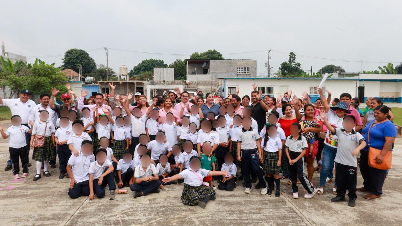 Alcaldesa de Huimanguillo inaugura el banderazo de construcción del domo en la escuela de El Torito