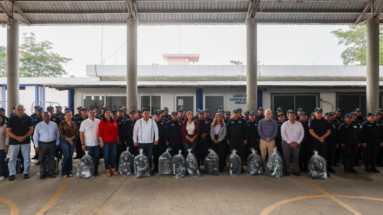Alcaldesa Mari Luz Velázquez Jiménez entrega dotación de uniformes a elementos de Seguridad Pública en Huimanguillo