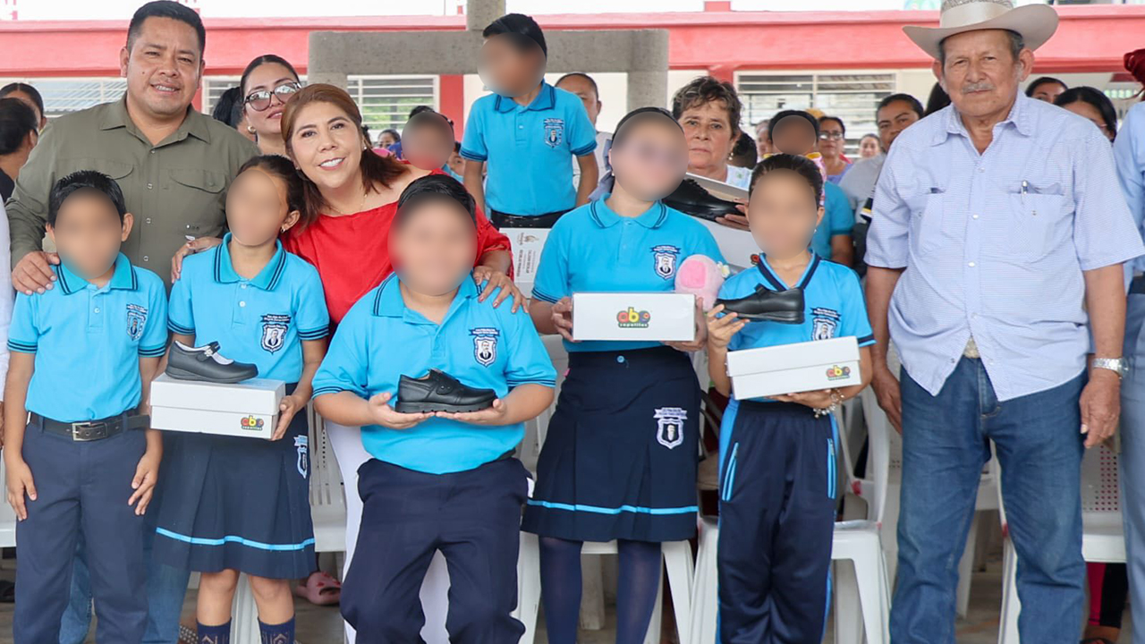 Alcaldesa de Huimanguillo fortalece la educación con entrega de calzado escolar gratuito en Villa San Manuel